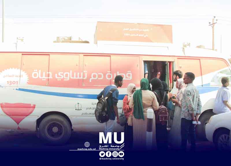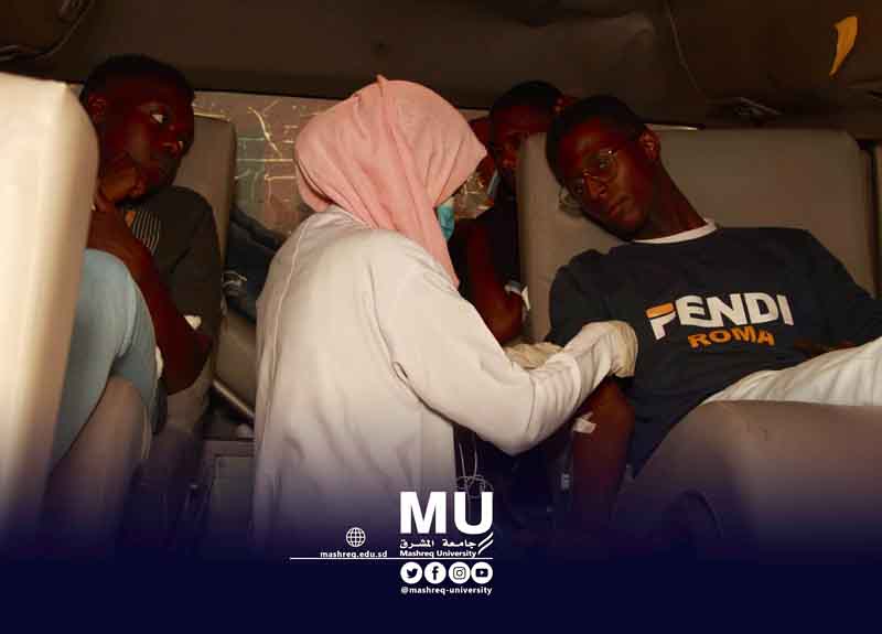 The Faculty of Medical Laboratory Sciences at Mashreq University, in cooperation with the National Voluntary Blood Donation Program, organized the second voluntary blood donation campaign on Wednesday 20/10/2021, at the University premises. The campaign was under the supervision of Dr. Maha Adam, the Director of National Blood Transfusion Services - Central Blood Bank. Dr. Dahlia Ibrahi Waqi’ Allah, Dean of the College and organized by the Department of Hematology of the College represented by Dr. Tariq Al-Taib and Hayat Omar, Head of Department, with the generous sponsorship of Dr. Nizar Al-Halab, Vice-President of Mashreq University. The campaign coincided with the blood donation lectures within the basic hematology course for second-level students at the College of Laboratory Sciences, where students were practically trained on how to select donors and conduct preliminary examinations before performing the donation process. The campaign found a great turnout, as a large number of students from other colleges participated in the event.