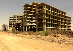 Now the work is underway on the three large halls complex with a capacity of 500 students each in addition to 4 small halls with a capacity of 200 students. While the ceiling of the first grand hall was poured, work continues on the beams and the ceilings of the other two remaining halls. The middle halls complex and the conference buildings were designed and ready for the construction during the next phase.