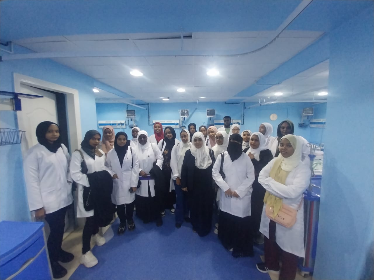 Twenty-two nursing students from the Faculty of Nursing at Manbar Al-Salam Hospital in Cairo attended the practical training. The students were briefed and training hours were agreed upon according to a specific schedule for two operating rooms, patient rooms, internal medicine clinics, surgery clinics, and obstetrics and gynecology clinics.